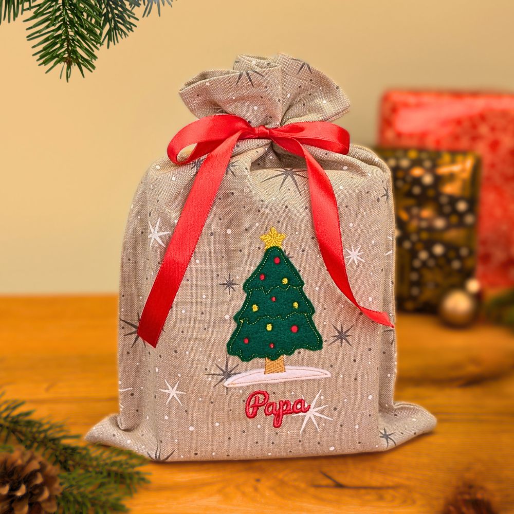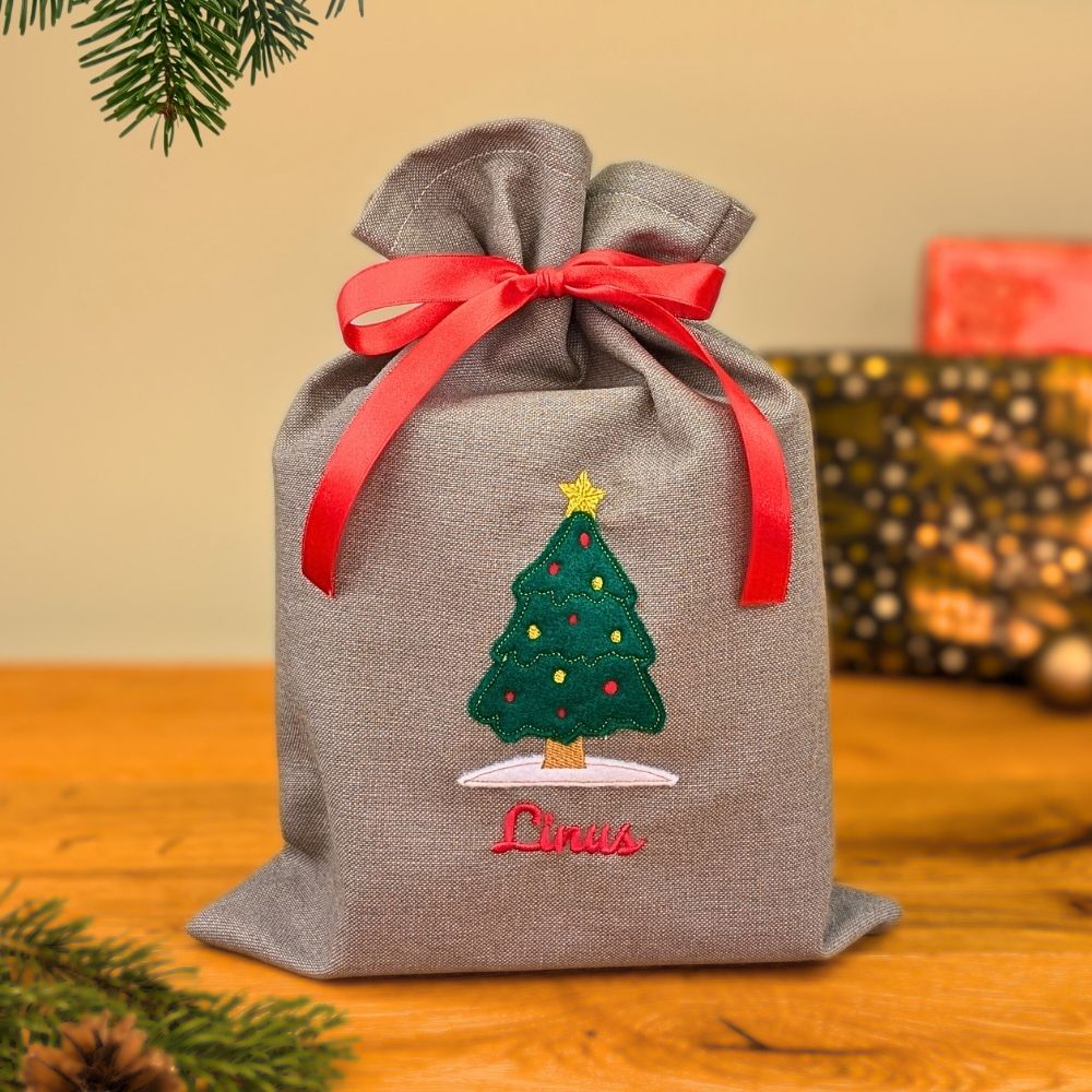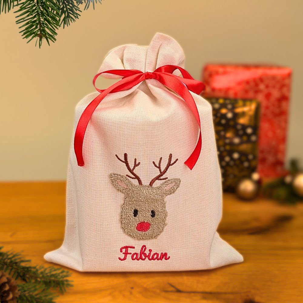 Dieser handgefertigte Nikolaussack mit liebevoll gesticktem Nikolausmotiv bringt Kinderaugen zum Leuchten. Perfekt für den Nikolaustag bietet er ausreichend Platz für Süßigkeiten, kleine Geschenke und Überraschungen. Mit der individuellen Bestickung des Namens wird der Nikolaussack zu einem ganz persönlichen Highlight für jedes Kind.